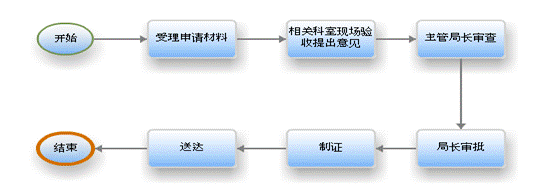 (1)申报材料;(2)受理申请;(3)审核批准(4)核发《医疗器械经营企业许可证》。 | |||