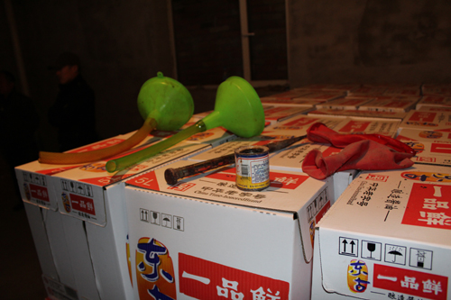 图为现场查获假冒调味品及灌装工具