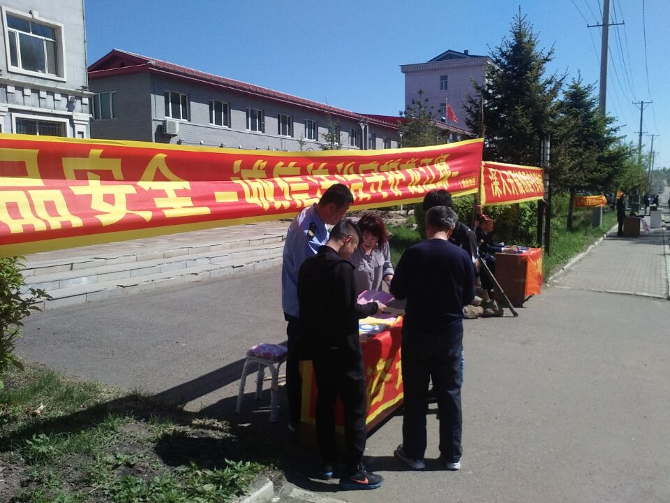 此次宣传活动,乌伊岭分局悬挂条幅2条,设立咨询台1个,发放各类宣传册和资料共150余份,现场咨询31人次。通过此次活动,进一步提高了广大群众的饮食用药安全法治观念,为全区开展社会治安综合治理和推动“平安”建设营造了良好舆论氛围。