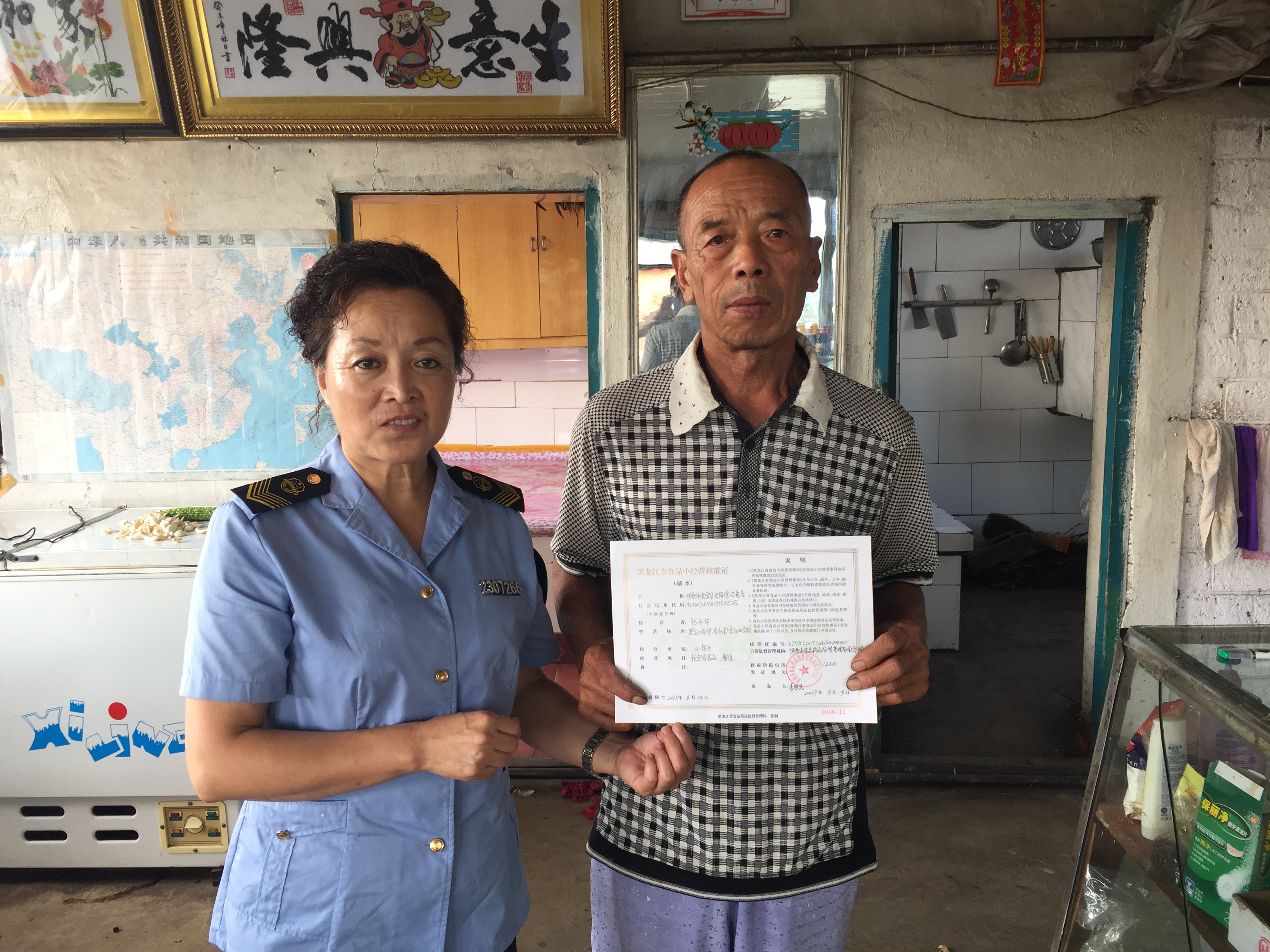 伊春市食品药品监督管理局南岔分局发放首张《黑龙江省食品小经营核准证》